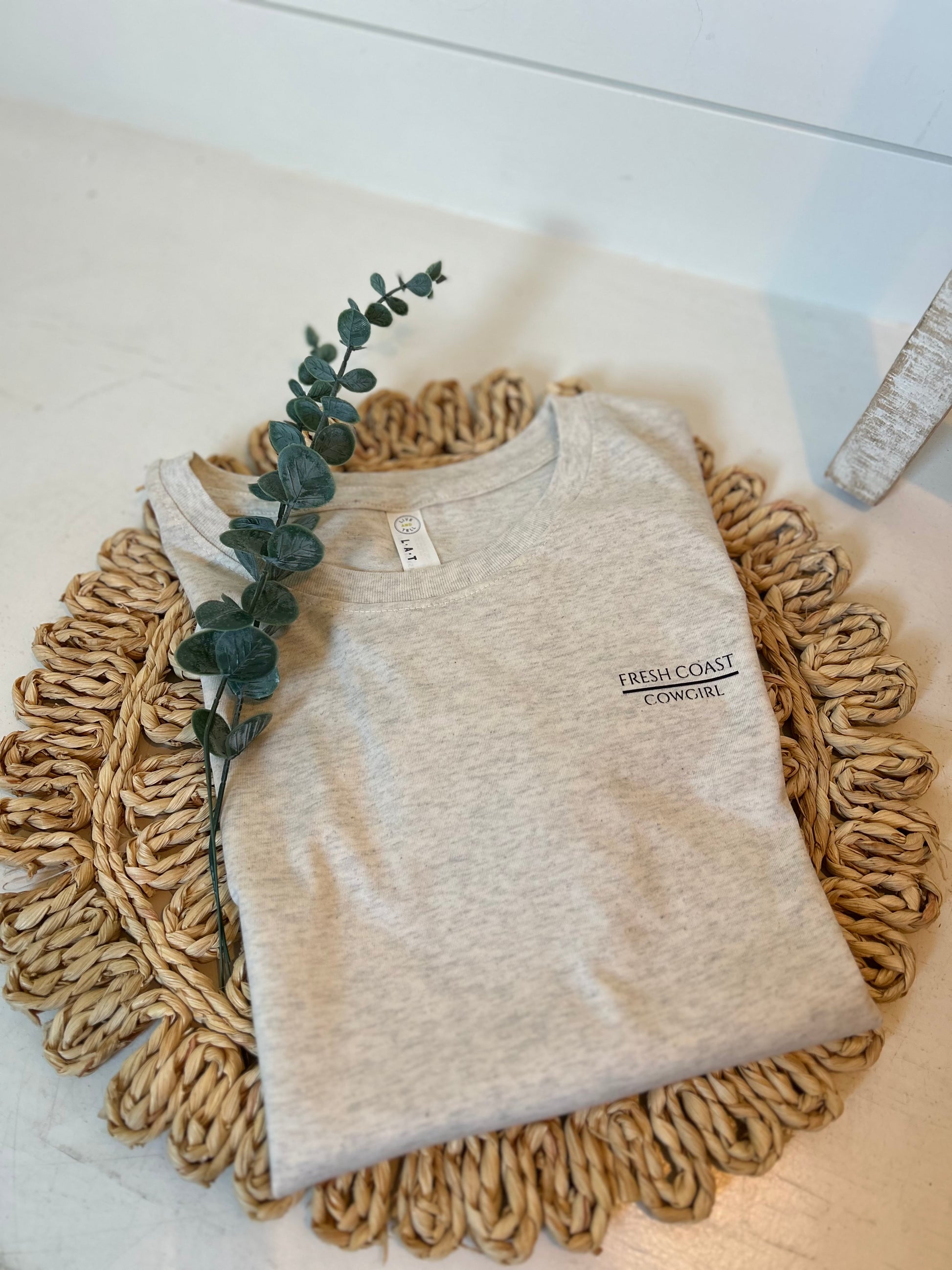 Front Detail: Fresh Coast Cowgirl logo on left chest